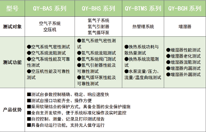 QY-B系列测试系统是针对PEM燃料电池系统用空气子系统、氢气子系统、热管理子系统等设计的一款测试平台,用于完成各部件的功能、性能、稳
